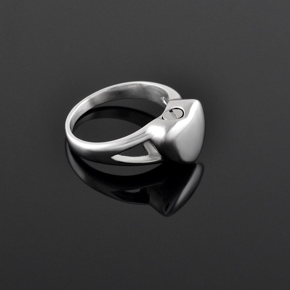 A cremation urn ring shaped as a heart. This cremation ring will hold and protect the ashes of your loved one & won't tarnishing or lose it's finish over time.