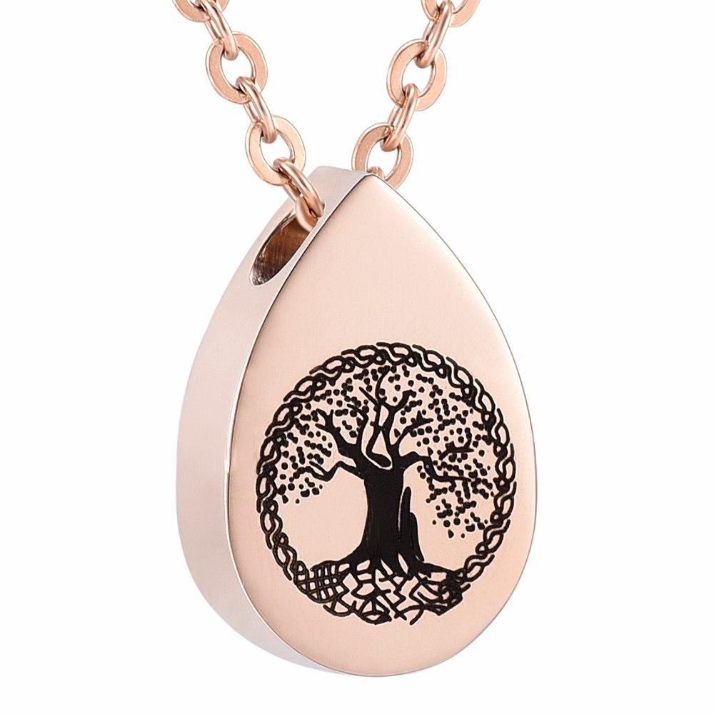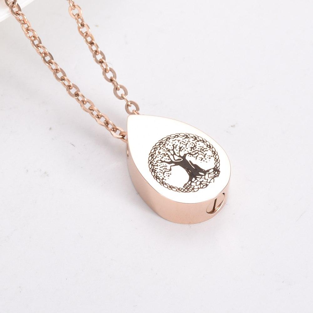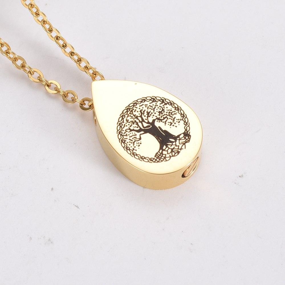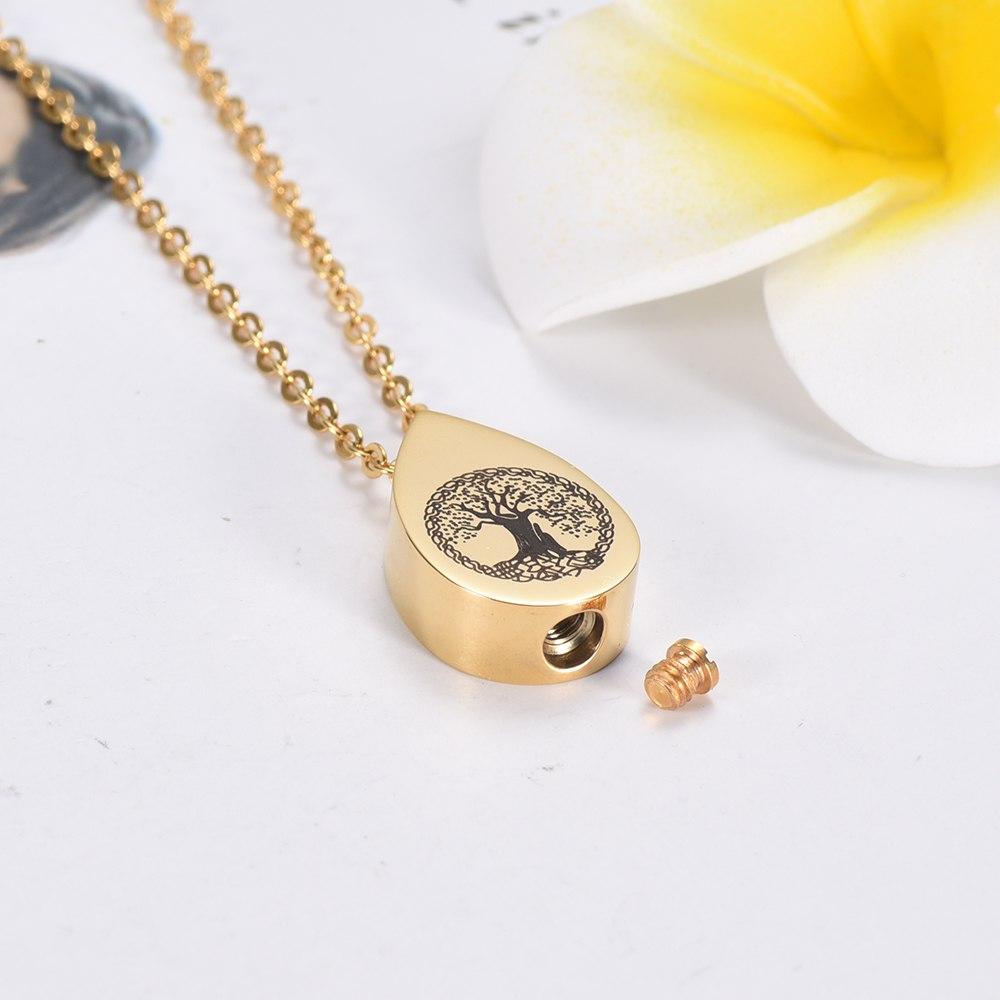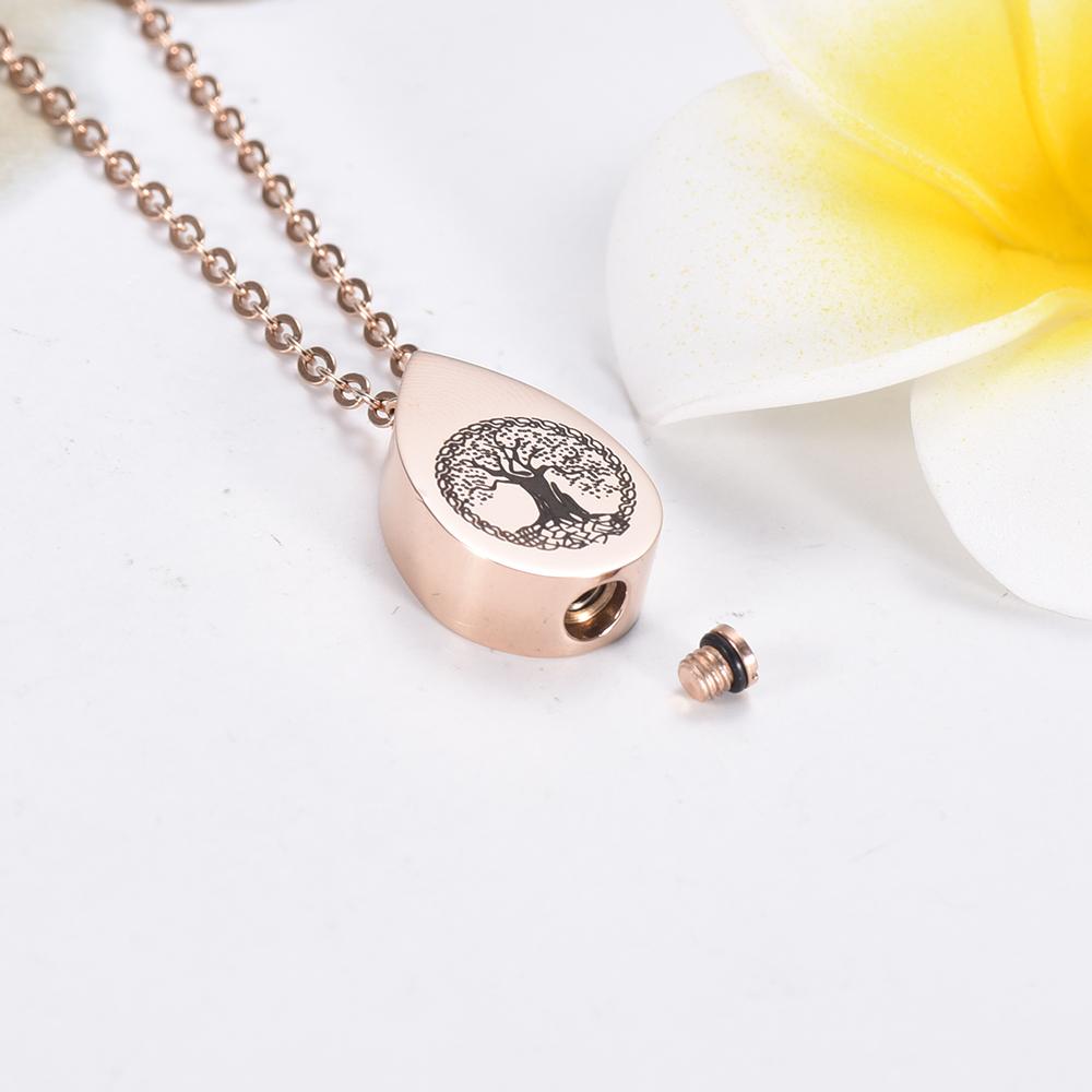 Collar de urna de cremación en forma de lágrima del árbol de la vida