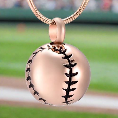 The Baseball Shaped Cremation Urn Necklace from Cherished Emblems allows you to carry forward the spirit of your loved one and the game that brought you together. It's more than just a piece of jewelry—it's a reminder of the bonds formed, lessons learned, and love shared through the timeless game of baseball.
