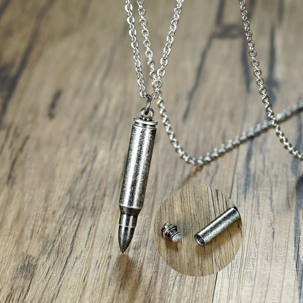 They were your soldier, your hunter, and your protector. Your love for them is solid and unyielding. They served you and they served others. Fighting was always for the ones they loved. You take pride in the knowledge that your loved one was a guardian to all they knew. The Bullet Shaped Cremation Necklace is the perfect way to remember and honor your loved one.