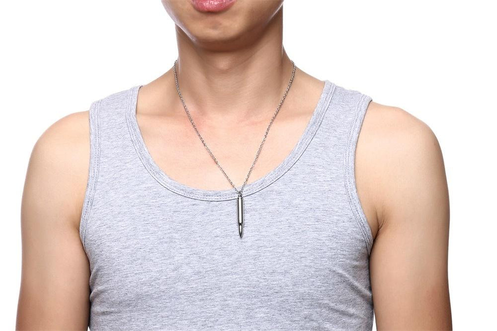 The ash necklace is a classic bullet design with an easy screw off top to allow for ashes to be placed. Carry and guard your loved one as they did for you with the Bullet Shaped Cremation Necklace.