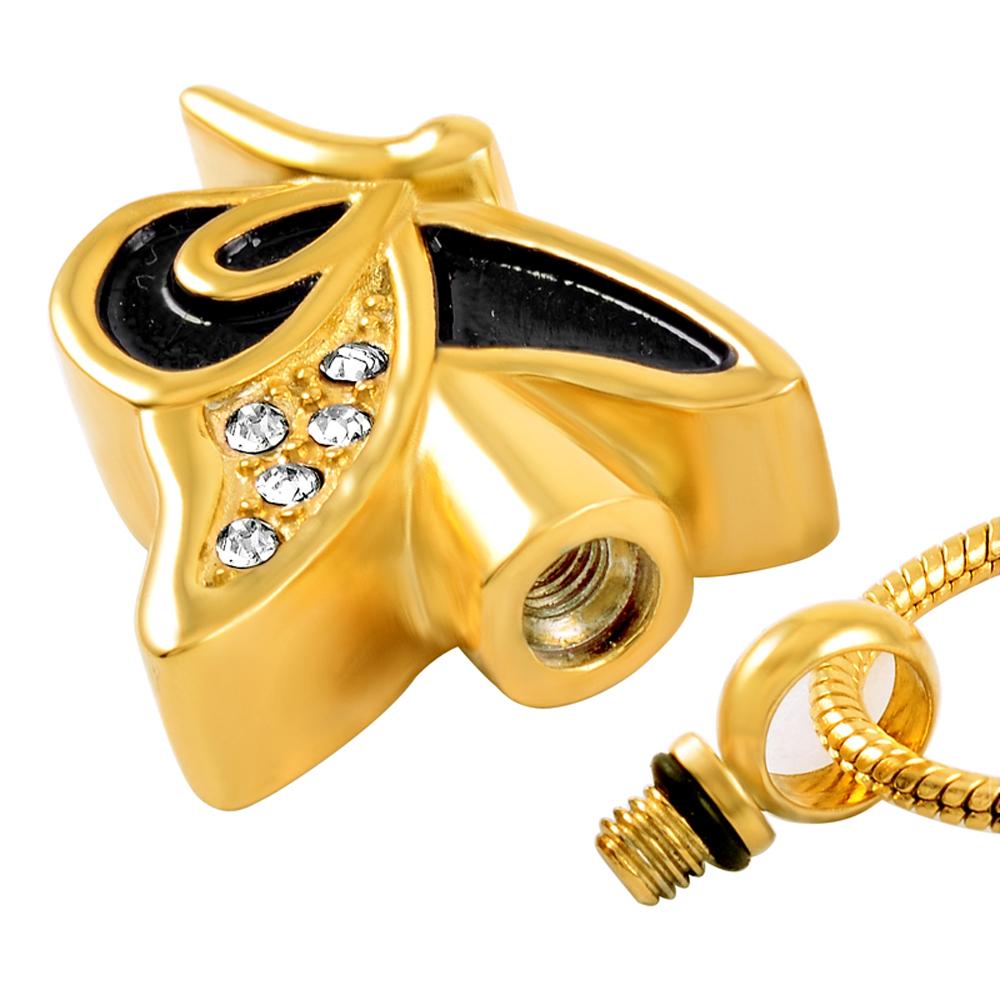This is a butterfly shaped cremation urn necklace with rhinestones. This cremation urn will hold and protect the ashes of your loved one & won't tarnish or lose it's finish over time.