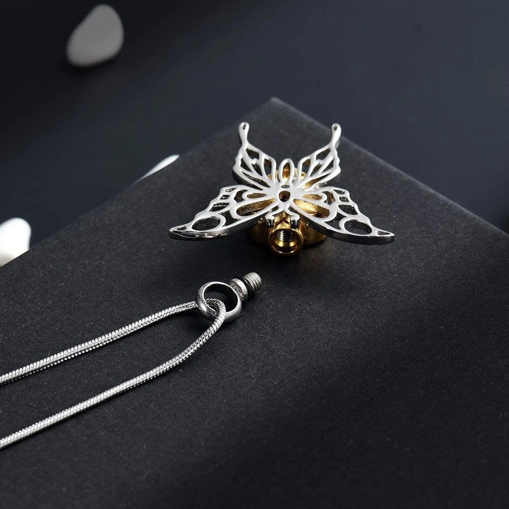 Crafted with love and precision, our Butterfly Cremation Necklace serves as a touching tribute to the memories of your cherished loved one. This exquisite pendant, designed into a delicate butterfly, symbolizes transformation, hope, and the eternal cycle of life.