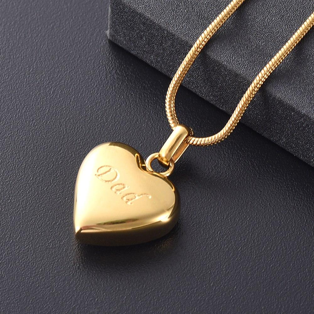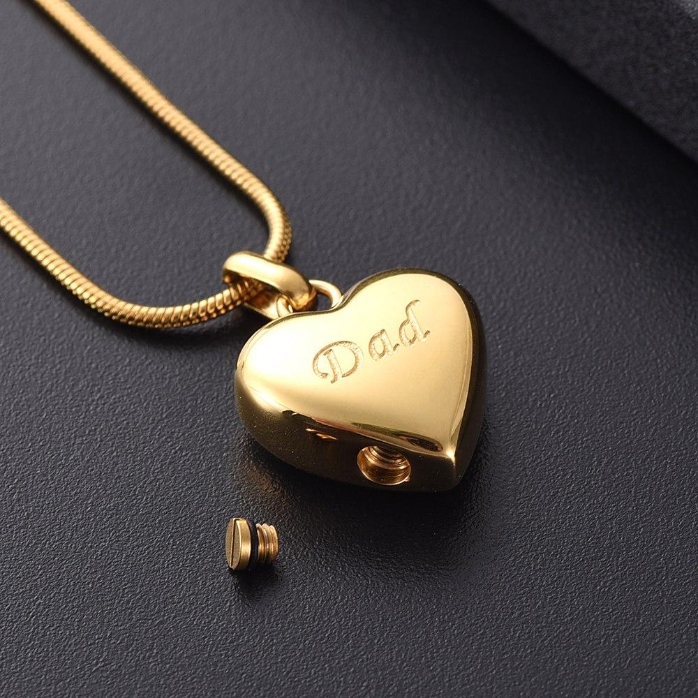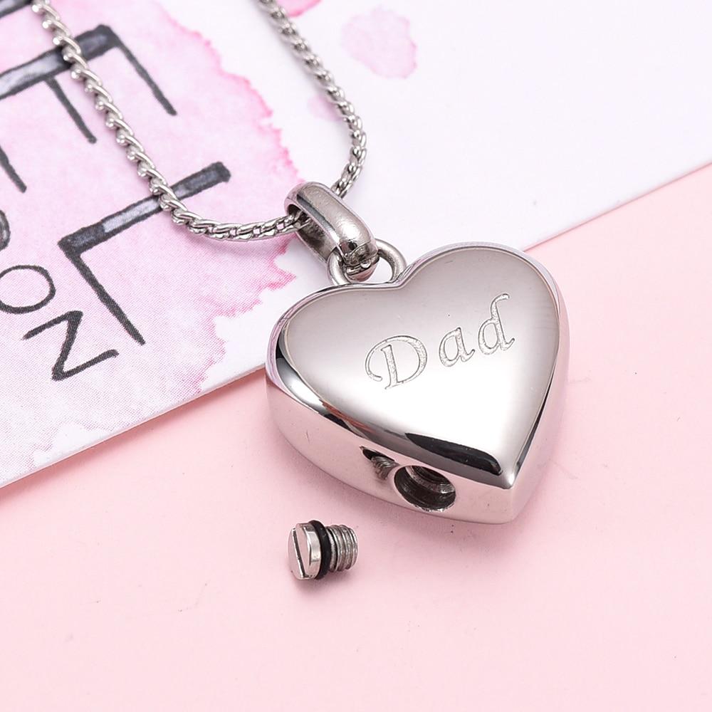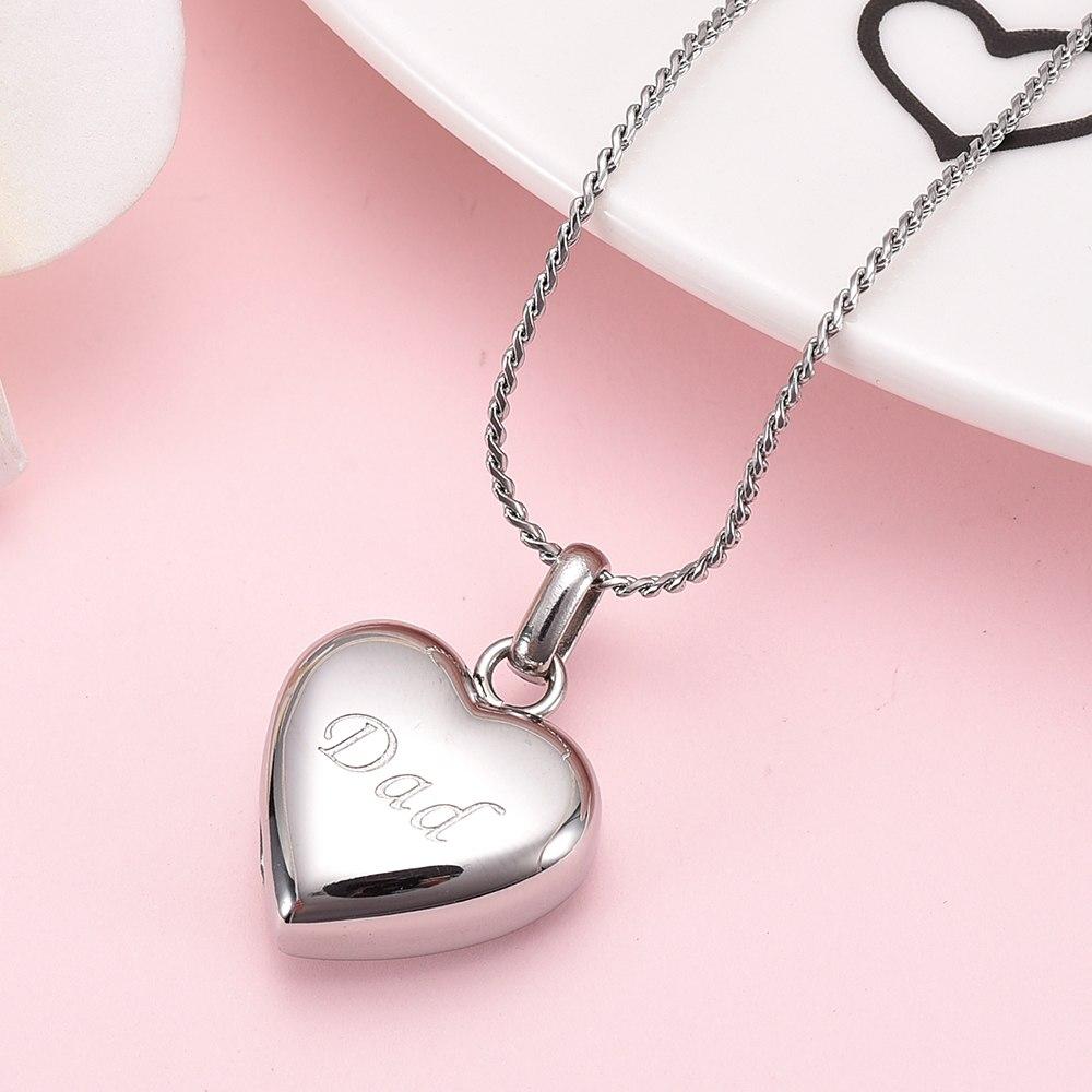 Simple Heart Etched With Dad Cremation Urn Necklace