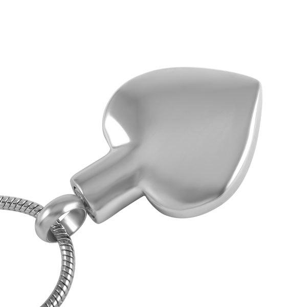 The pendant of the ash necklace itself is classic heart shape. On the heart is etched designs. It is polished to provide a radiance that reflects the magnitude of your affection for your loved one and etched with detail. The Silver Heart Shaped Cremation Urn Necklace speaks for itself. Love is simple.