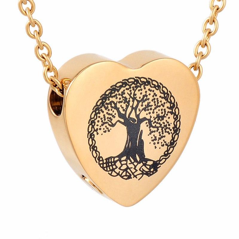 Heart Shaped Cremation Urn Necklace With Etched Tree of Life