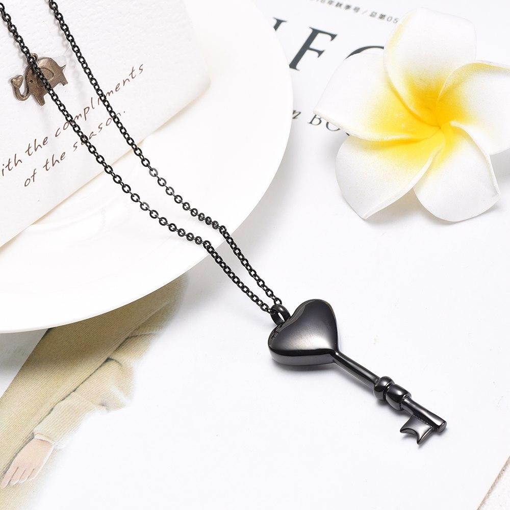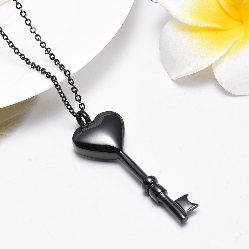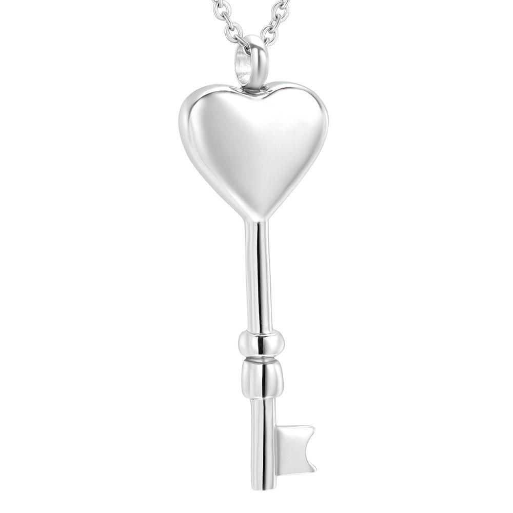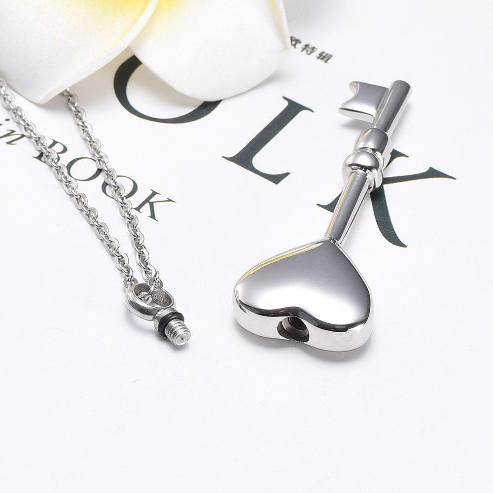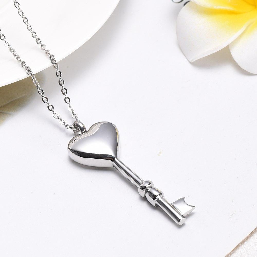 This ash necklace is a classic heart design. At the point of the heart there is a key. Honor and remember your loved one with the Heart Shaped Key Cremation Urn Necklace.