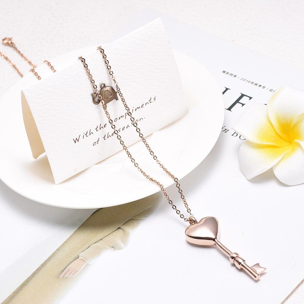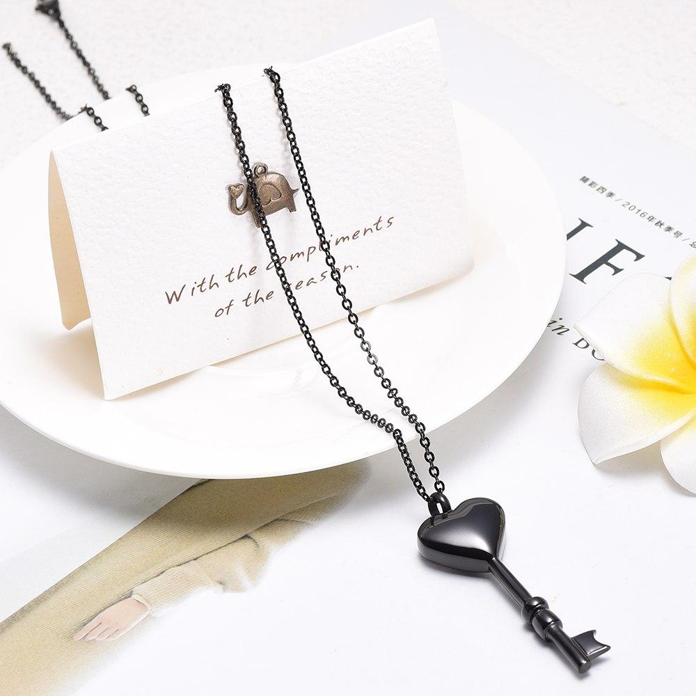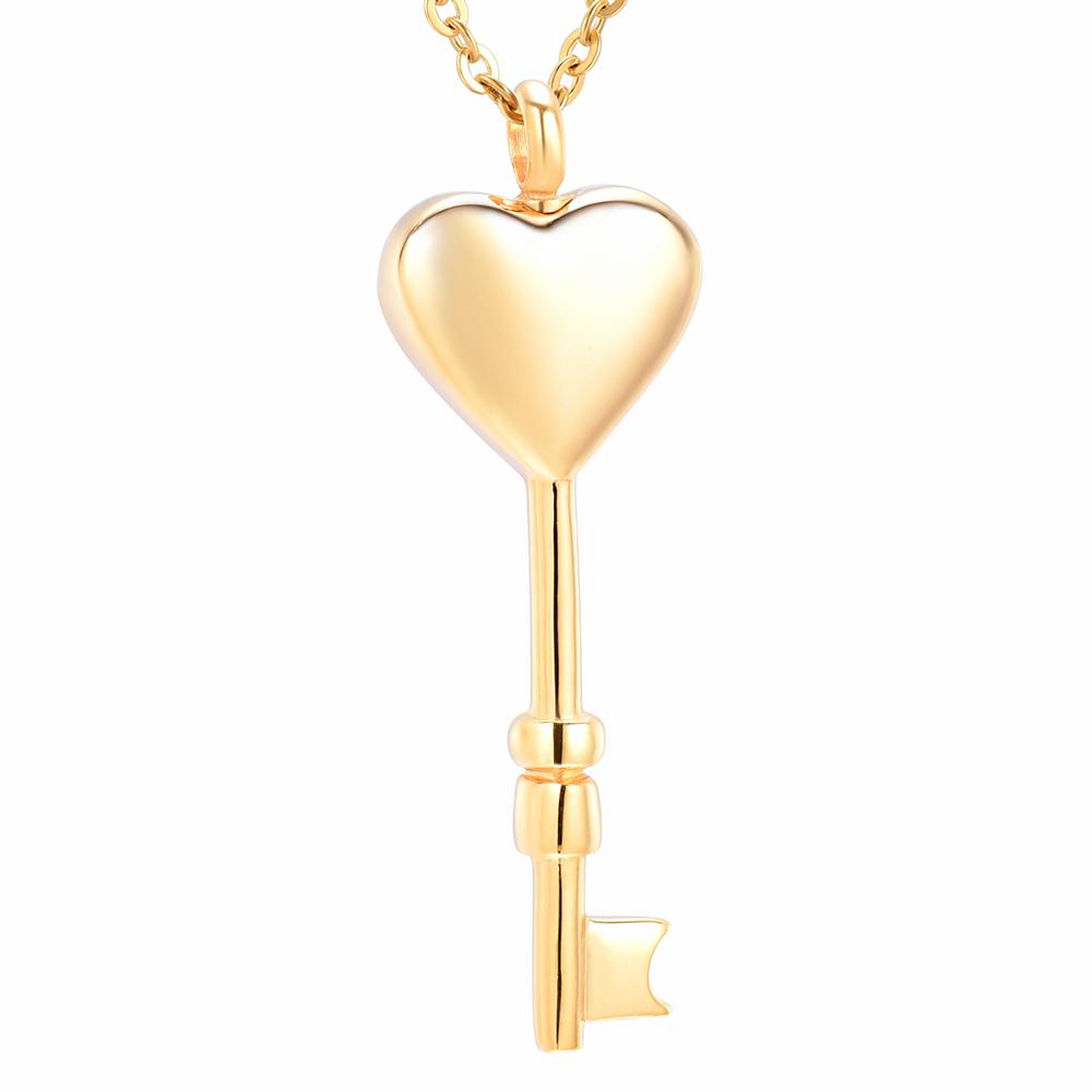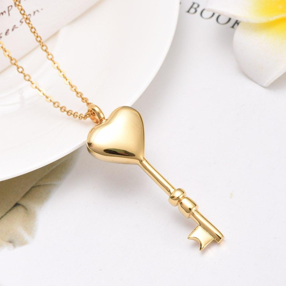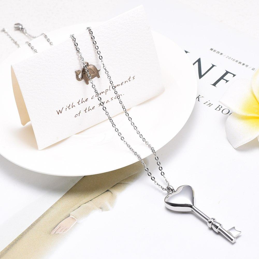 This ash necklace is a classic heart design. At the point of the heart there is a key. Honor and remember your loved one with the Heart Shaped Key Cremation Urn Necklace.