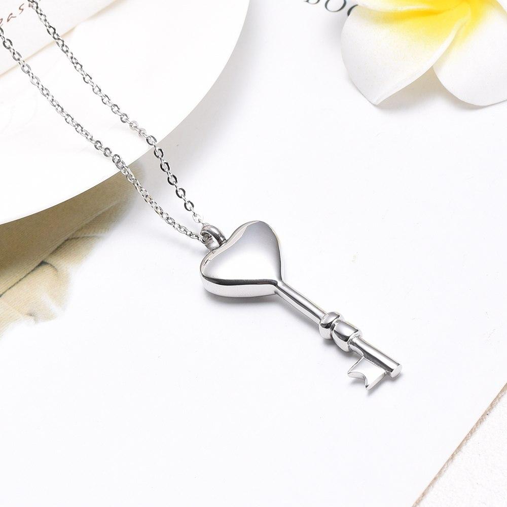 Heart Shaped Key Cremation Urn Necklace - Silver is backordered and will ship as soon as it is back in stock.