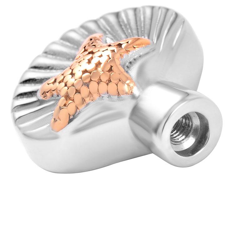 Sea Shell & Starfish Cremation Urn Necklace - Silver with Rose Gold is backordered and will ship as soon as it is back in stock.