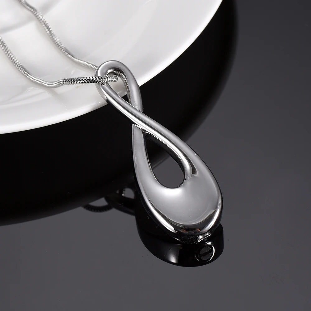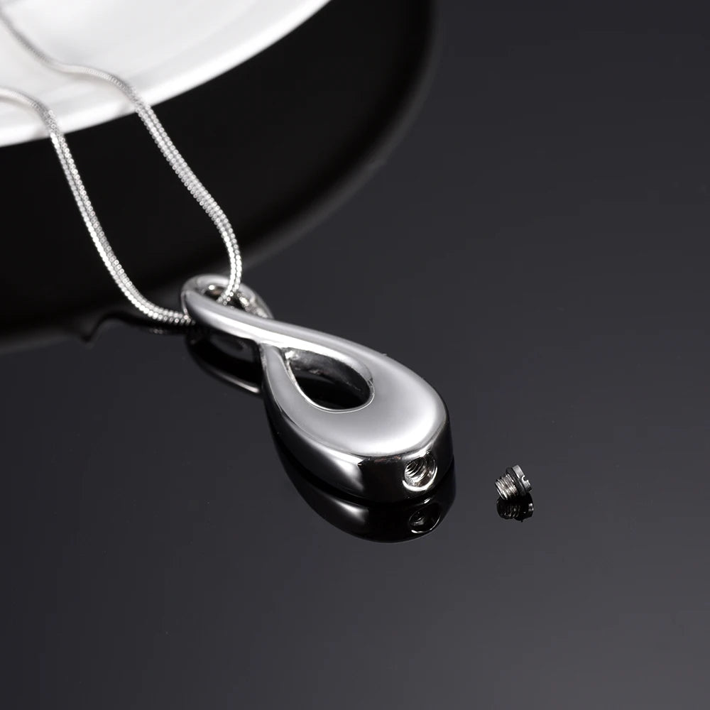 Silver Infinity Teardrop Shaped Cremation Urn Necklace